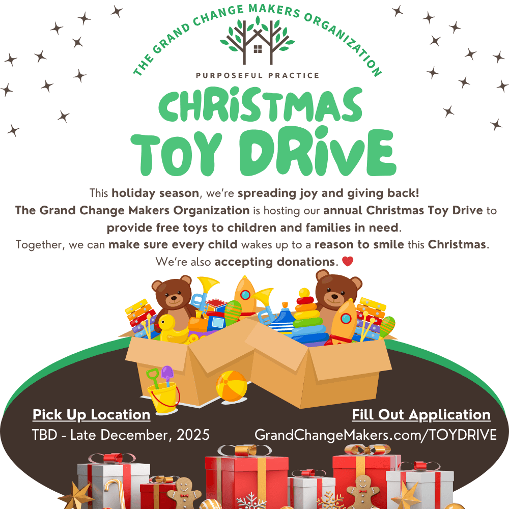 Join us this December 2025 for our Grand Change Makers Christmas Toy Drive — a joyful community event dedicated to giving back and spreading holiday cheer to families across Detroit!